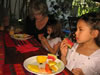 She wanted to go look for Lulu so we visited the kitty cat for awhile and then it was time for showers and getting ready for the day. The little girls all wore their new "Tico" dresses.