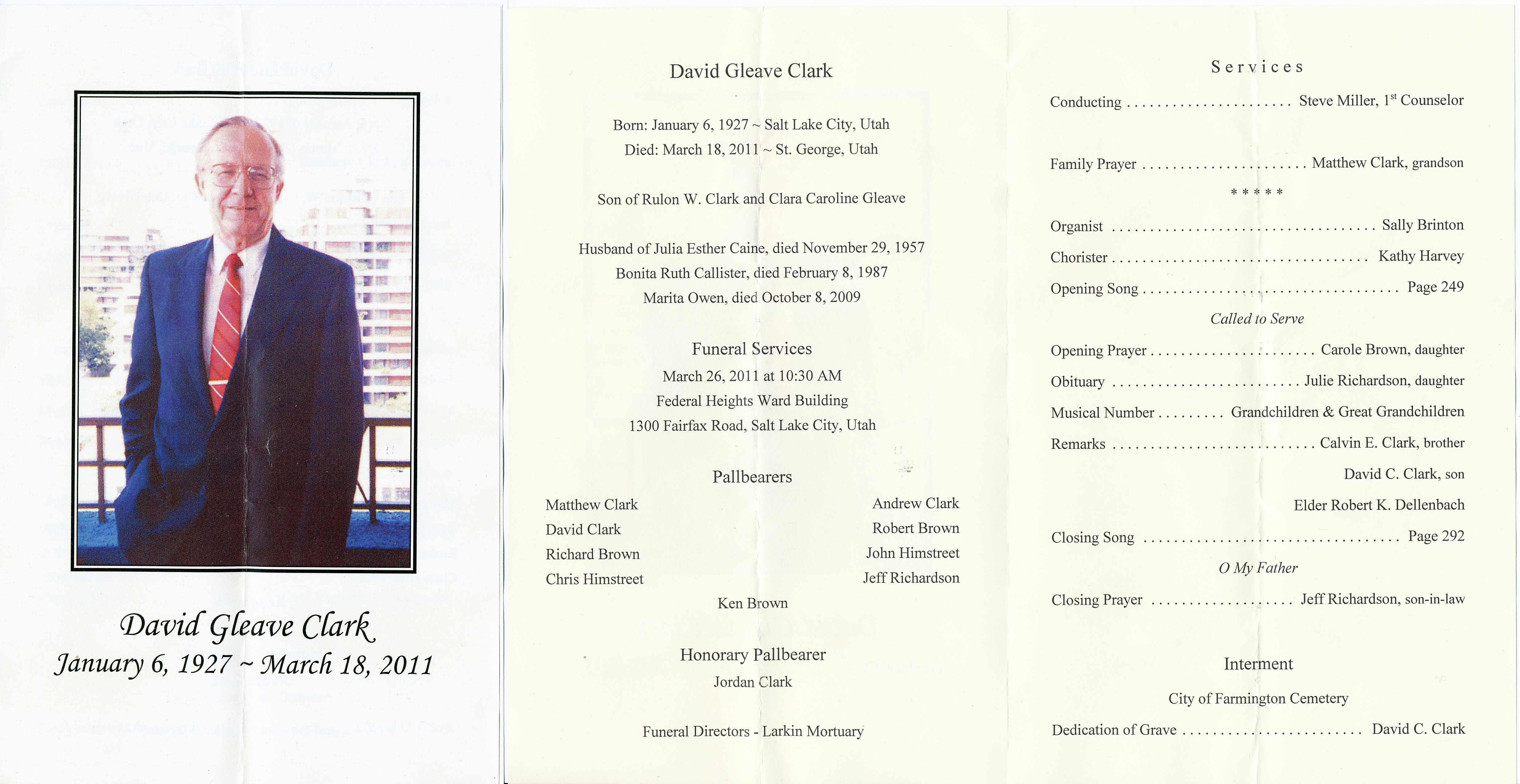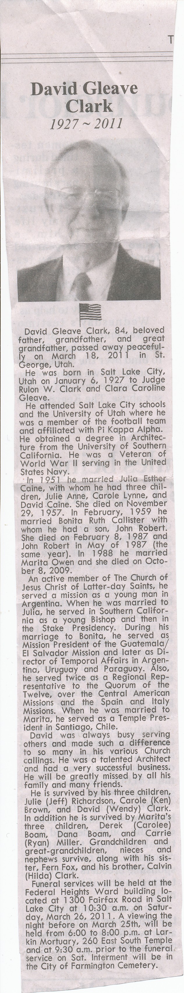 Weekend in Salt Lake City for the funeral of David Clark, who served as mission president during much of the time I was in Guatemala-El Salvador as a missionary. Click here to see the funeral program. Click here to see the obituary.