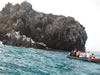 We now head for the old part of the archipelago. In Punta Suarez, the rocks here reach an age around 3.5 million years. This island is the home for sea lions and boobies, iguanas and albatrosses, mockingbirds and finches. The morning calls for an exciting walk, but lava rocks and some rough terrain prevail at this site. Punta Suarez is one of those unique places in GalApagos where wildlife abounds. Every single inch of this site has something happening. Blue-footed boobies, Nazca boobies, and gulls will be seen through out the walk. Now that all cool waters are returning, the largest seabird in Gai6pagos, the Waved Albatross, is back and has already started to mate.
